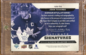 John Tavares 2019-20 Upper Deck Ultimate Collection Ultimate Signatures #US-TA Maple Leafs