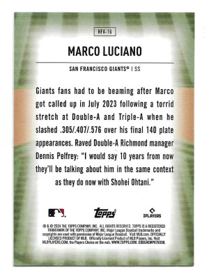 2024 Topps Home Field Advantage #HFA16 Marco Luciano (RC) - San Francisco Giants