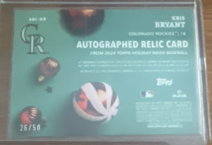 2024 Topps Holiday Kris Bryant Patch Autograph /50