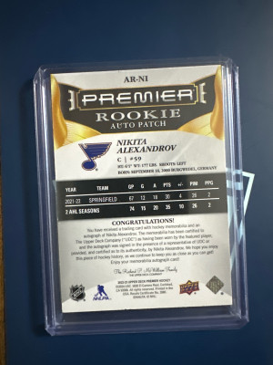 Nikita Alexandrov Premier Rookie Patch Auto 246/249