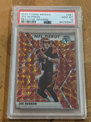 2020 Mosaic Reactive Orange Joe Burrow Rookie PSA 10
