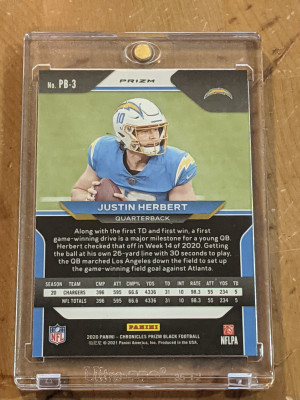 2020 Chronicles Prizm Black Silver Justin Herbert Rookie
