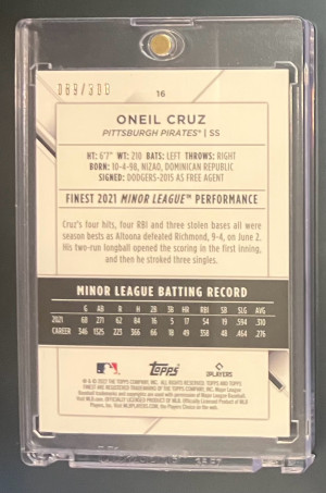 2022 Topps Finest OβNeil Cruz Aqua Refractor Rookie /199