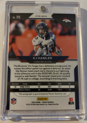 π 2020 Prizm Kj Hamler Blue Shimmer Auto RC Rookie Card #315 Denver Broncos RC