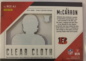 π 2014 Panini Clear Cloth Totally Certified Patch RC #βd 1/25