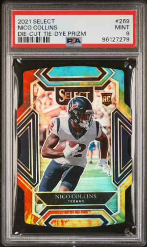 2021 Panini Select Nico Collins Die-Cut Tie-Dye Prizm #269 /25 SP PSA 9