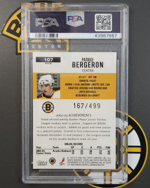 Patrice Bergeron 2003-04 Topps Pristine #107 Refractor PSA 9 Mint /499 Rookie RC