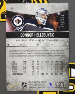 2021-22 Metal Universe Precious Metals Gems Red PMG /100 Connor Hellebuyck