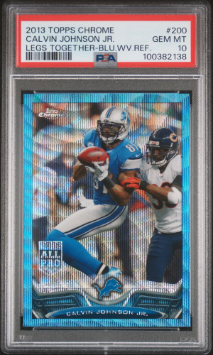 2013 Topps Chrome Calvin Johnson Jr. Legs Together-Blue Wave Refractor PSA 10