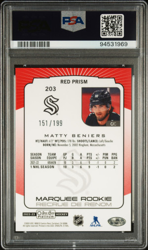 MATTY BENIERS Rookie RC 2022 O-Pee-Chee Platinum Red Prism /199 PSA 10 GEM MINT Pop 2