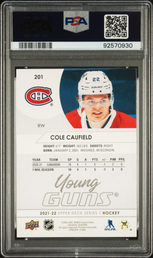2021-2022 Upper Deck Cole Caufield #201 Rookie PSA 9