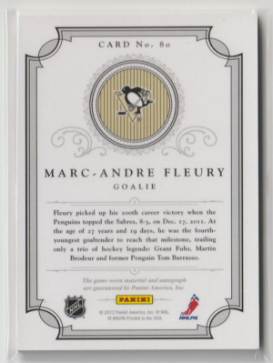 Panini Dominion Peerless Patches Marc-Andre Fleury #80 Auto 3/40 Patch