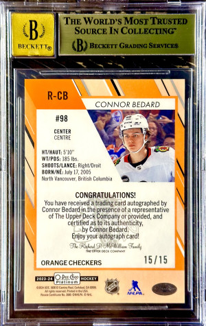 Connor bedard Orange checkers auto /15 BGS 9.5