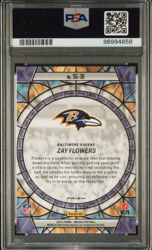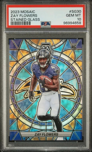 Zay Flowers (RC) Stained Glass - PSA 10 - Case Hit - 2023 Panini Mosaic - Ravens
