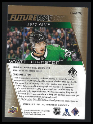 2022-23 Wyatt Johnston Future Watch Patch Auto /100
