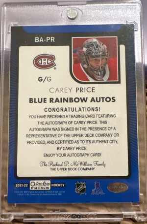2021 O Pee Chee Platinum Carey Price Blue Rainbow Auto