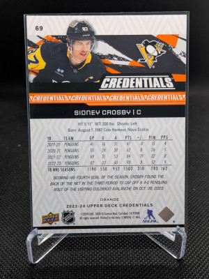 23-24 Upper Deck Credentials - Orange - Sidney Crosby /249 #69