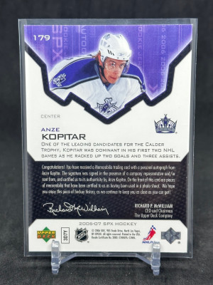 Anze Kopitar 2006-07 Upper Deck SPx Rookie Jersey Auto /1299 #179 Kings