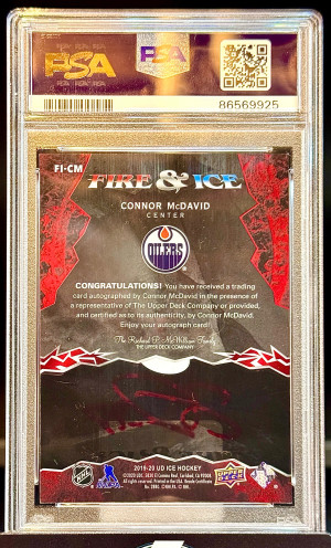 Connor McDavid 2019-20 UD Ice Fire & Ice {FIRE} Auto PSA 9