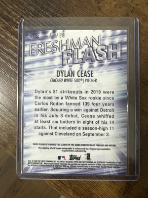 Dylan Cease 2020 Topps Chrome RC AUTO Freshman Flash 05/99 Insert AUTOGRAPH