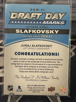 2022-23 SP Game Used Draft Day Marks “K”Juraj Slafkovsky #DDM-SL /35