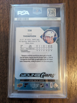 PSA 9 Tage Thompson Young Guns 2017-18 Upper Deck Rookie Card RC! Card #228