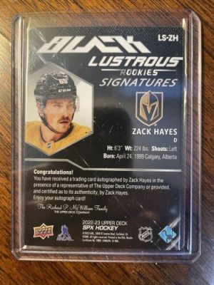 2022-23 SPX Black Lustrous Rookie Signatures Zack Hayes Auto #265/299