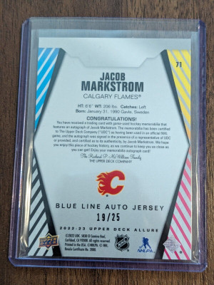 2022-23 Upper Deck Allure - Jacob Markstrom - Blue Line Auto Jersey /25