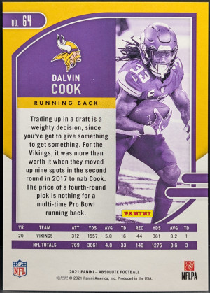2021 Panini Absolute Red Squares #64 Dalvin Cook Minnesota Vikings /499 [119|64]