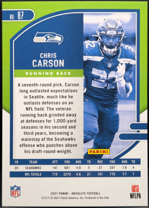 2021 Panini Absolute Red Squares #87 Chris Carson Seattle Seahawks /499 [119|87]