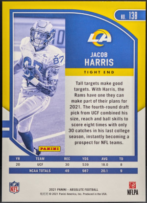 2021 Panini Absolute Red Squares #138 Jacob Harris Los Angeles Rams /499 [119|138]