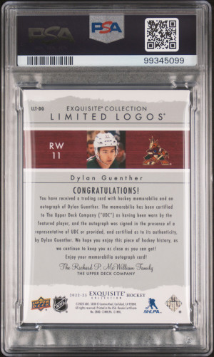2022 Upper Deck The Cup Exquisite Collection 2003-04 Limited Logos Autograph Patches Dylan Guenther Ec '03 Limited Logo Auto Pat