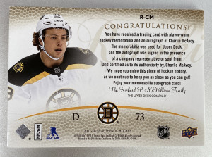 Charlie McAvoy 2017-18 Rookie Upper Deck SP Authentic Retro Future Watch Patch Autograph /25