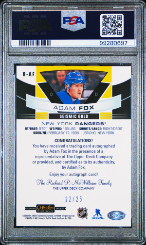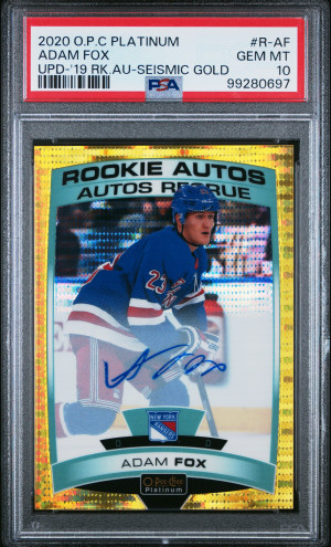 2020 O-Pee-Chee Platinum Update Autographs Adam Fox Upd-'19 Rk.au-Seismic Gold