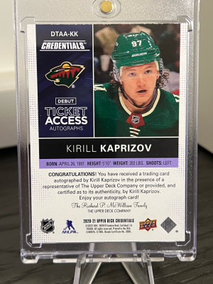 2020-2021 Credentials Kirill Kaprizov Debut Ticket Access Auto Purple /3