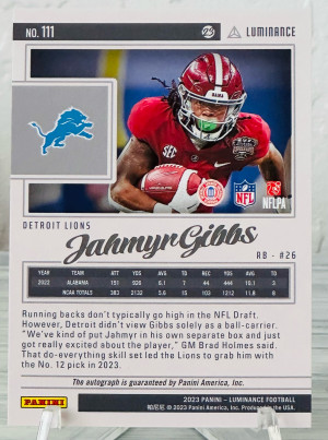 2023 Luminance Jahmyr Gibbs Rookie Blue Auto /50 #111 Alabama Uniform Detroit Lions