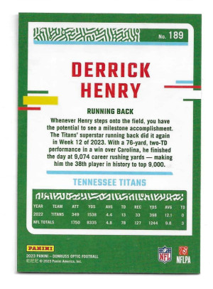 2023 Donruss Optic #189 Derrick Henry - Tennessee Titans