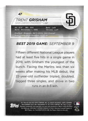2020 Bowman's Best #47 Trent Grisham RC - San Diego Padres