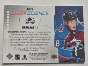 2019-20 Credentials Rookie Science Cale Makar Auto #RS-25