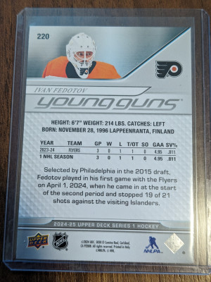 2024-25 Upper Deck Series 1 Young Guns #220 Ivan Fedotov Rookie
