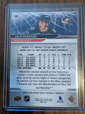 2024-25 Upper Deck Outburst Silver #59 Zach Werenski - Columbus Blue Jackets