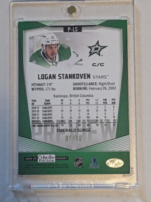 Logan Stankoven 2024-25 OPC #P-LS PLATINUM PREVIEW MARQUEE RC EMERALD SURGE /10