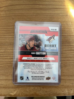 19-20 Credentials Barrett Hayton Debut Ticket Access Rookie Auto 2/65