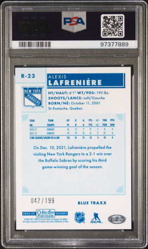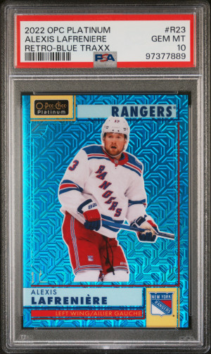 2022 O-Pee-Chee Platinum Retro Alexis Lafreniere Retro-Blue Traxx /199