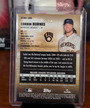 2023 Stadium Chrome Corbin Burnes Red Foil Auto /50