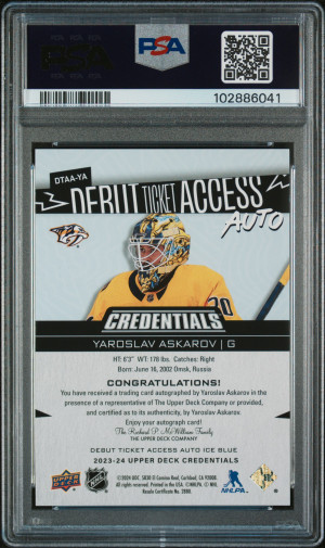 2023 Upper Deck Credentials Debut Ticket Access Autographs Yaroslav Askarov