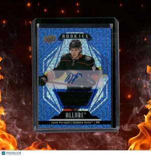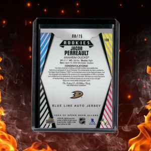 2022-23 Upper Deck Allure Jacob Perreault Blue Line Jersey Rookie Auto 08/75