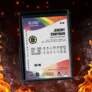 2022-23 Upper Deck Allure Jeremy Swayman Color Flow Orange - Yellow Speckle