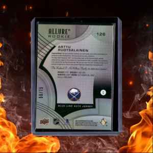 2021-22 Upper Deck Allure Arttu Ruotsalainen Blue Line Jersey Rookie Auto 56/75