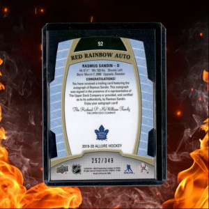 2019-20 Upper Deck Allure Rasmus Sandin Red Rainbow Die-Cut Rookie Auto 252/349